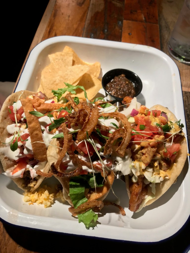 My friend ordered three tacos which was $13. Each one looked truly delicious (pictured above). To our surprise, the best tasting taco turned out to be, “The Classic,” although the, “Cheeseburger Taco,” and, “Baja Fish,” were tasty also. My friend’s biggest regret with the order was getting three tacos instead of just two. Each taco was filled to the brim with toppings, so two would be plenty unless you have the appetite of my father.