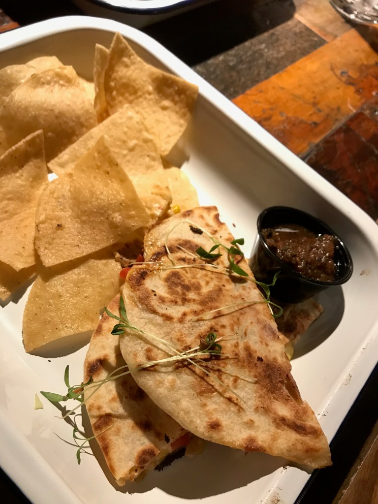There were typical Mexican appetizers such as chips & either queso, guacamole, or salsa, as well as nachos which were topped with refried beans, roasted corn, pico de gallo, jalapeños, crema, and cilantro, in addition to queso. When I visited the restaurant, my friend and I opted out of ordering an appetizer because both of our meals included a side of chips and salsa. However, we soon discovered the portions were tiny (see photo below). I was upset because the salsa was some of the best I’ve ever had, but I did not want to order extra because it was not free like it is at most Mexican restaurants.