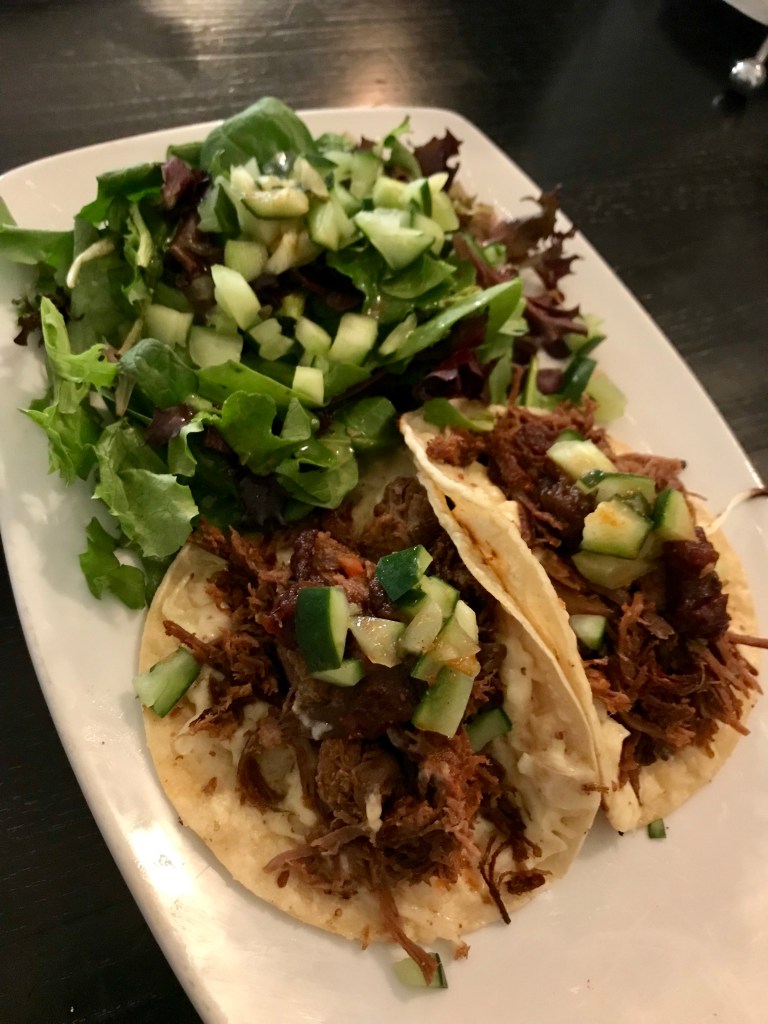 My sister tried the, “Lamb Carnitas tacos,” and said they were very tasty (pictured above). The dish consisted of two tacos made with Scissortail Farm lamb carnitas, creamy visalia cheese, cranberry fennel relish, and Berbere spiced tomato and cucumbers, served with a side salad. Her only complaint was there was almost too much meat for the small corn tortillas to hold which actually seems like a good thing in my opinion!