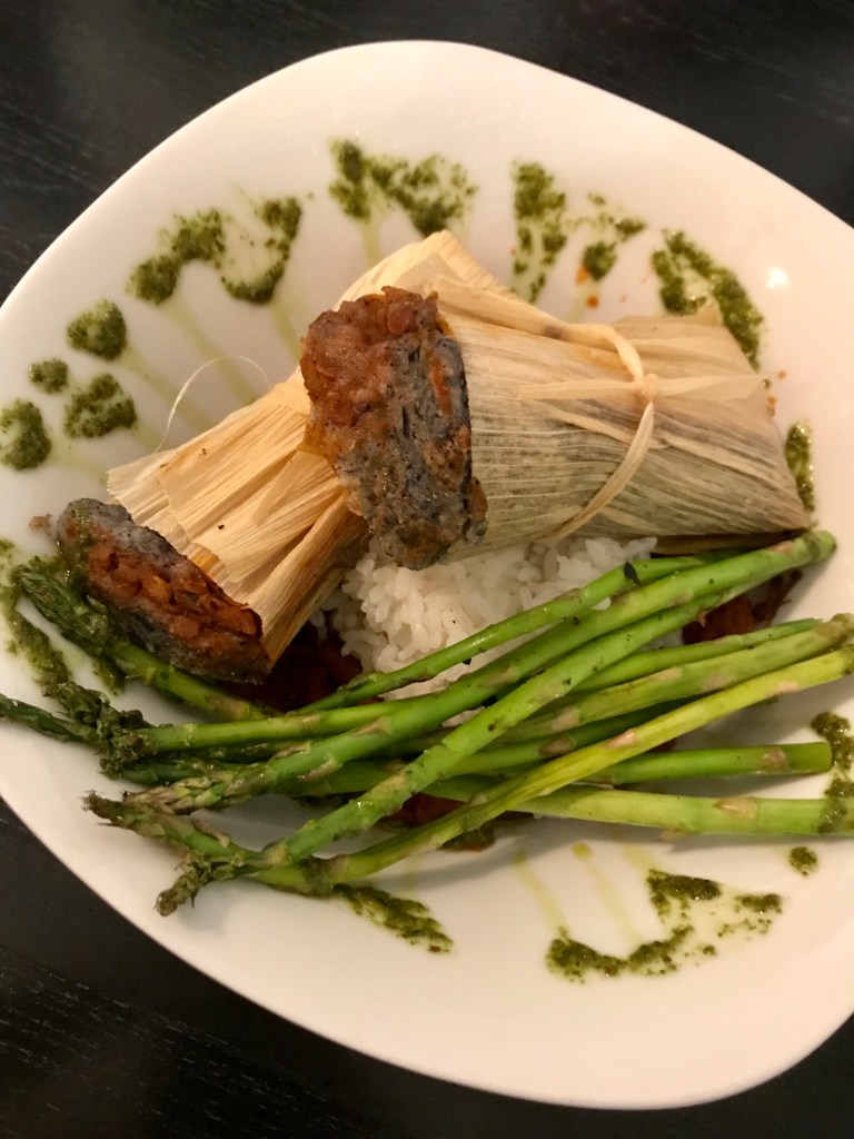 I ordered the “Pumpkin Blue Corn Tamales” which were the secret menu item of the night (pictured above). I can honestly say I have never had a better tamale, even at an authentic Mexican restaurant. The blue corn tamales sat atop a bed of pumpkin stew with beans and a scoop of white rice, accompanied by a side of grilled asparagus. The tamales were filled with some sort of vegetarian mixture that was similar to the pumpkin stew at the bottom of the dish. If you are a meat lover, this meal might not be your pick, but I promise you will still enjoy it. I’m not sure if this item will be offered in the future, but if it is, I would make a special trip to the restaurant just to taste it again.